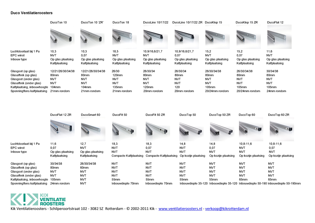 Duco overzicht: | ventilatieroosters | Prijzen |